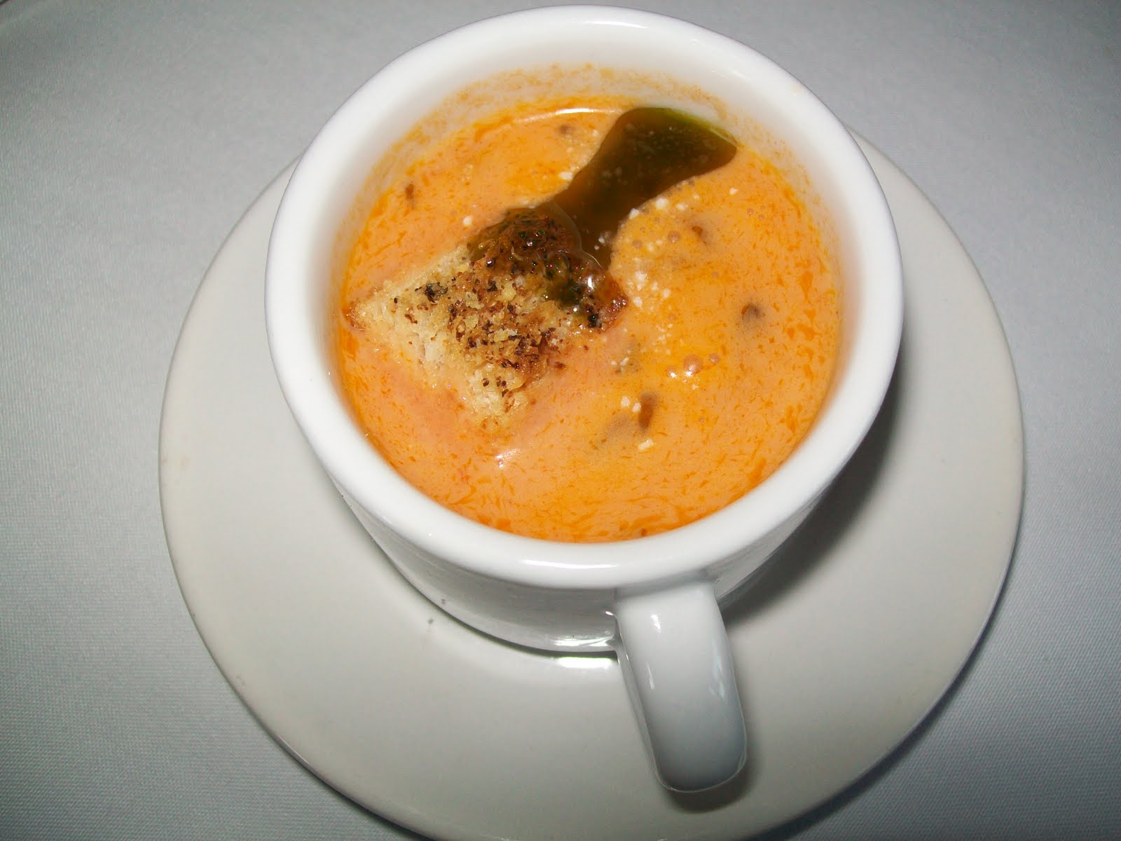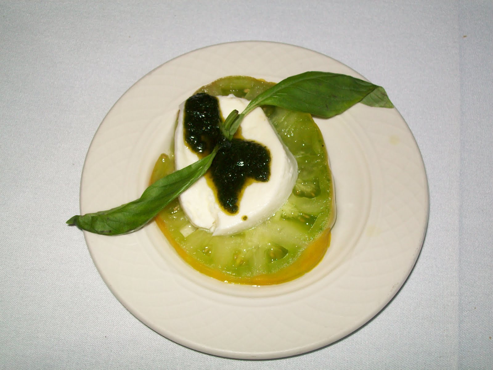 Next course was his Tomato Bisque topped with local Shatto Winstead Cheese along with a breathtakingly beautiful Caprese salad. The salad consisted of fresh handmade Mozzarella,(which he demonstrated) Aunt Ruby’s Green Heirloom Tomato and Mint Pesto. It tasted as good as it looks!