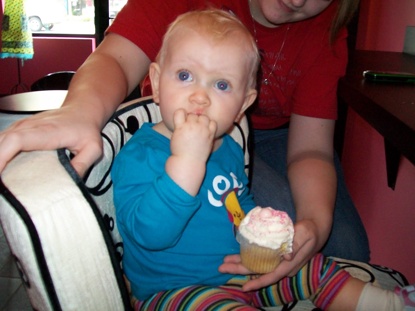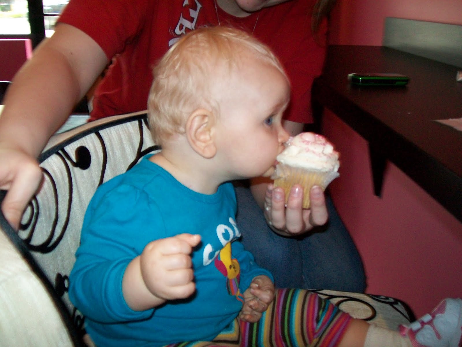 We stumbled upon this while out at the Park Place shopping center in Leawood. I couldn’t resist getting my great niece Kennedy her first cupcake even though she is only 11 months old. It was just so girly and pink and perfectly sweet! Just like her!
