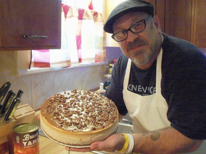After several failed attempts, Chef Terry came up with his “Sweet Potato Cheesecake with a Gingerbread crust and a Praline Topping”. It was Thanksgiving so, he decided he would make the Cheesecake and serve it to the family. Everyone loved it. His wife took a couple of slices into work with her the next day and shared it with some other co-workers and they loved it.