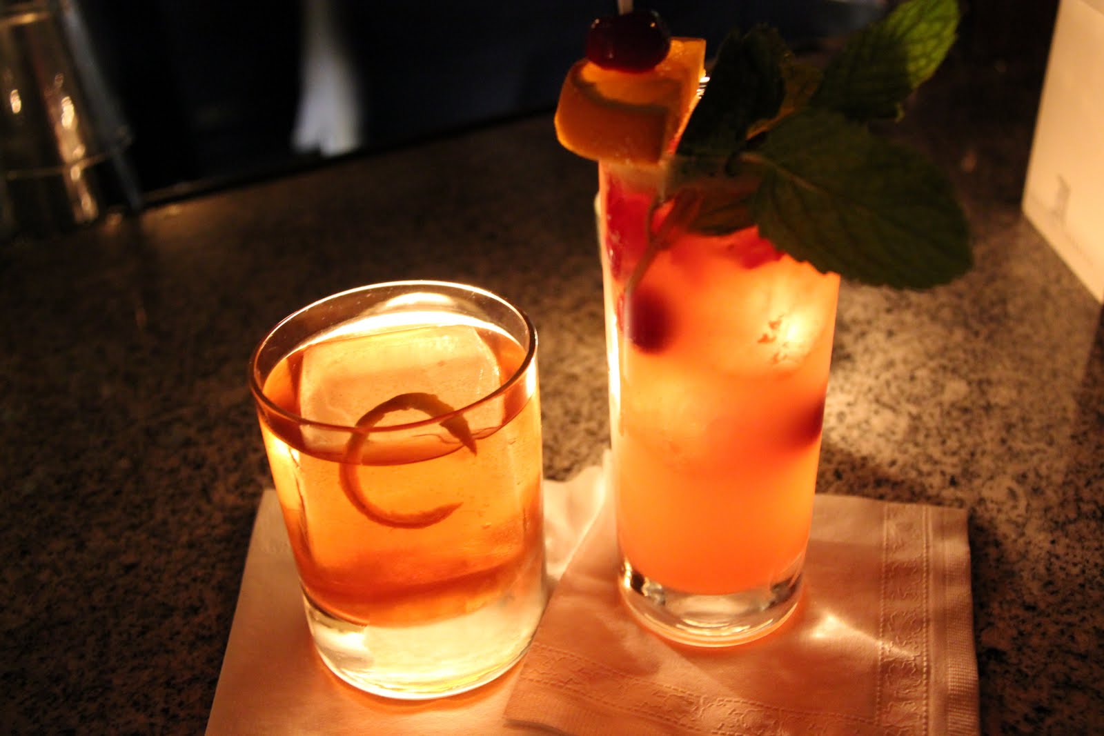 I could have been happy drinking those all night, but my curiosity got the best of me with the Ward and Precinct. This drink is set on fire and consists of Bourbon, lemon, sugar, orange, homemade grenadine, and Angostura Bitters. The sugar and oranges are added to the glass and then it is set ablaze which caramelizes the ingredients and gives this drink just a bit of sweetness.