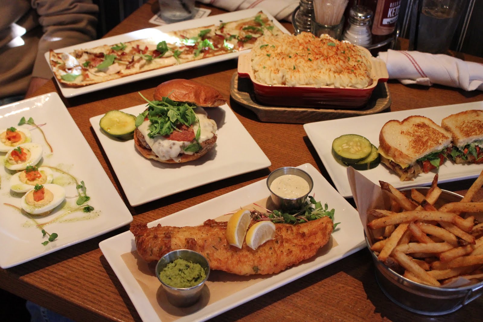 The comfort food offerings include oven-fried chicken, fish and chips, shepherd’s pie and a create your mac and cheese with mix-ins like prosciutto, caramelized onions, maytag blue cheese and more. I also cannot forget to mention there is breakfast available anytime.
