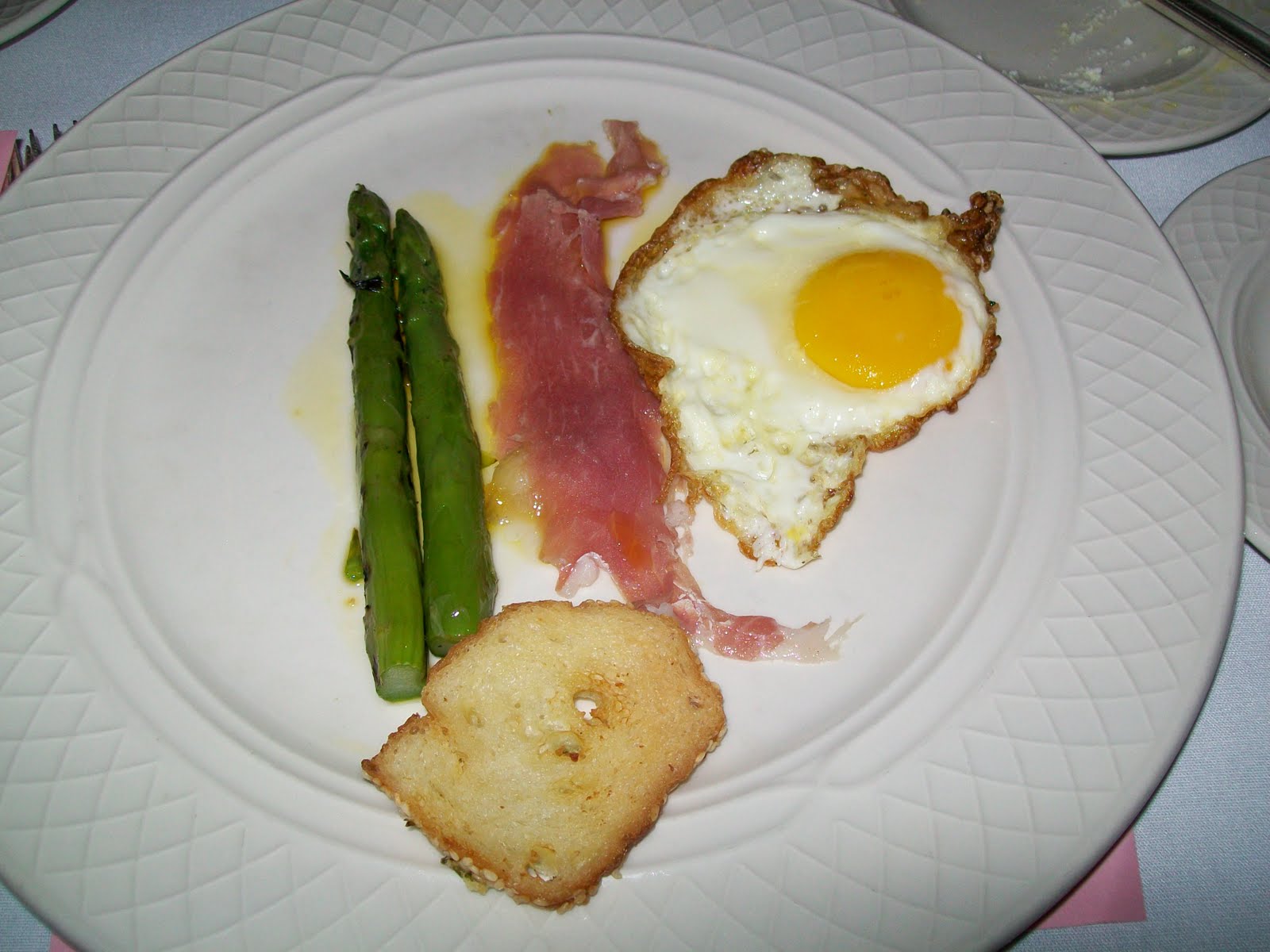 The next course was a Green Egg and Prosciutto dish. It came with some asparagus that was cooked to perfection. The egg was perfect as well; the white had a nice crisp to it and the yolk, delightfully runny.