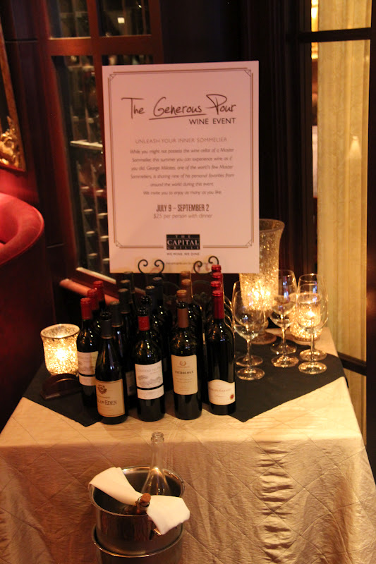 All of the wines featured at this event are outstanding. It is well worth the visit. I wish to thank The Capital Grille for treating me to this event and I enjoyed it so much I am planning a visit back before September 2 to experience it again at my own expense, $25.00 for all those wines is a steal!