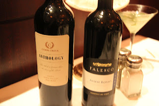 The red wines included Conn Creek Anthology, Ferrari Carano, Chateau Du Pin, Falesco, Assisi Rosa and Villa Mt Eden. All of the reds accompanied the meal delightfully. I chose lamb and a side of the creamed corn with bacon. The Chateau Du Pin was very rich and paired nicely with the smokey flavor in the corn.