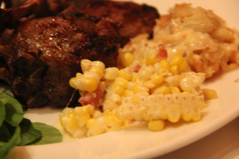 The Creamed Corn with bacon is prepared fresh at the restaurant and is so delicious. As you can see by the picture the kernels are cut fresh off the cob! This has become my new favorite side!