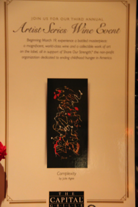 In addition to the “New Spring Plates”, the Capital Grille is also featuring the Artist Series Wine Event. This annual event gives guests at The Capital Grille a one-of-a-kind opportunity to experience an exclusive, limited allocation wine adorned with a unique piece of original artwork as its label, while supporting Share Our Strength and their mission to end childhood hunger in America. For every bottle sold the Capital Grille will donate $25.00 to the Share Our Strength foundation.
