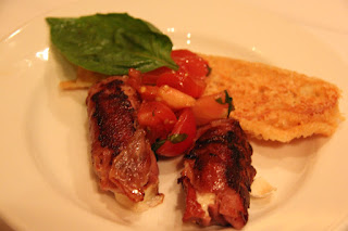 Appetizer – Prosciutto wrapped house made mozzarella.