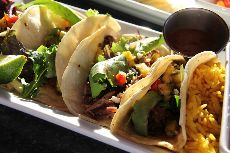 These were yummy. I loved the freshness of them and did not miss that greasy ring that surrounds many enchilada dinners out there. For Steve he brought the Short Rib Tacos, another dish I was eying.