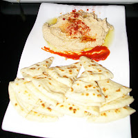 It was happy hour so my Specialty Martini was only $5.00 and starters were half price! What a perfect way to start the evening and get a great deal. We chose the House Marinated Olives and the Fusion Hummus. The olive display was a beautiful array of assorted olives, manchego cheese, extra virgin olive oil, and peppadew. The hummus is made with a mix of chickpeas and cannellini beans, spanish paprika and sriracha. It had a great creamy texture and just a little spice. The combination of the hummus and olives paired beautifully.