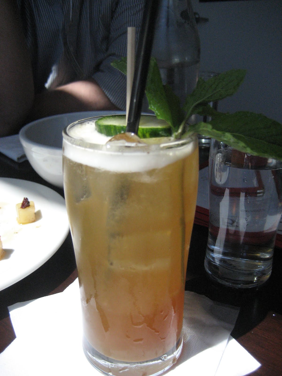 The cocktail I chose was Pimm’s Cup, which is actually the official drink of Wimbledon. It has house made ginger ale, lime, mint, and cucumber. This drink is refreshing and tasty I would highly recommend it.