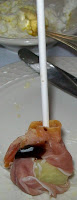 (More about them another time). There was also a Chilled Local Melon and Prosciutto Soup, these delightful Prosciutto and Melon Pops and a wonderful Frittata. Jasper thought the soup turned out too thick but I thought it was perfect and that it had a wonderful texture. The Melon Pops, were these perfect cubes of sweet melon wrapped in a pink blanket of thinly slice Proscuitto. They were served on a lollipop stick with just a drizzle of balsamic. They were adorable and delicious. And the Fritta, do you see the picture? Yes, that is crispy crumbled Prosciutto on top!