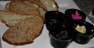 Along with the cocktails, Manifesto offers a few small plates. We ordered the breads and spreads. The bread is from the local Fervere Bakery and is served with a variety of house made spreads including a basil butter, goat cheese beet, olive tapenade, and apple butter.