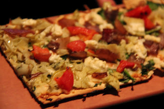 Ripe Plum Tomato Flatbread, with fresh basil, roasted garlic and melted Parmesan cheese and Artichoke & Goat Cheese Flatbread, with leaf spinach, balsamic onion and roasted peppers. Seasons 52 has numerous flatbreads on the menu and all are delightful. I am still stunned by the fact that they are only 475 calories.