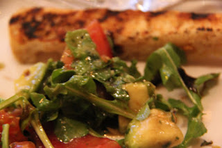 Tomato & Haas Avocado Salad, with organic arugula, balsamic glaze and grilled bruschetta. I love Avocado and could do this salad as an entree anytime.