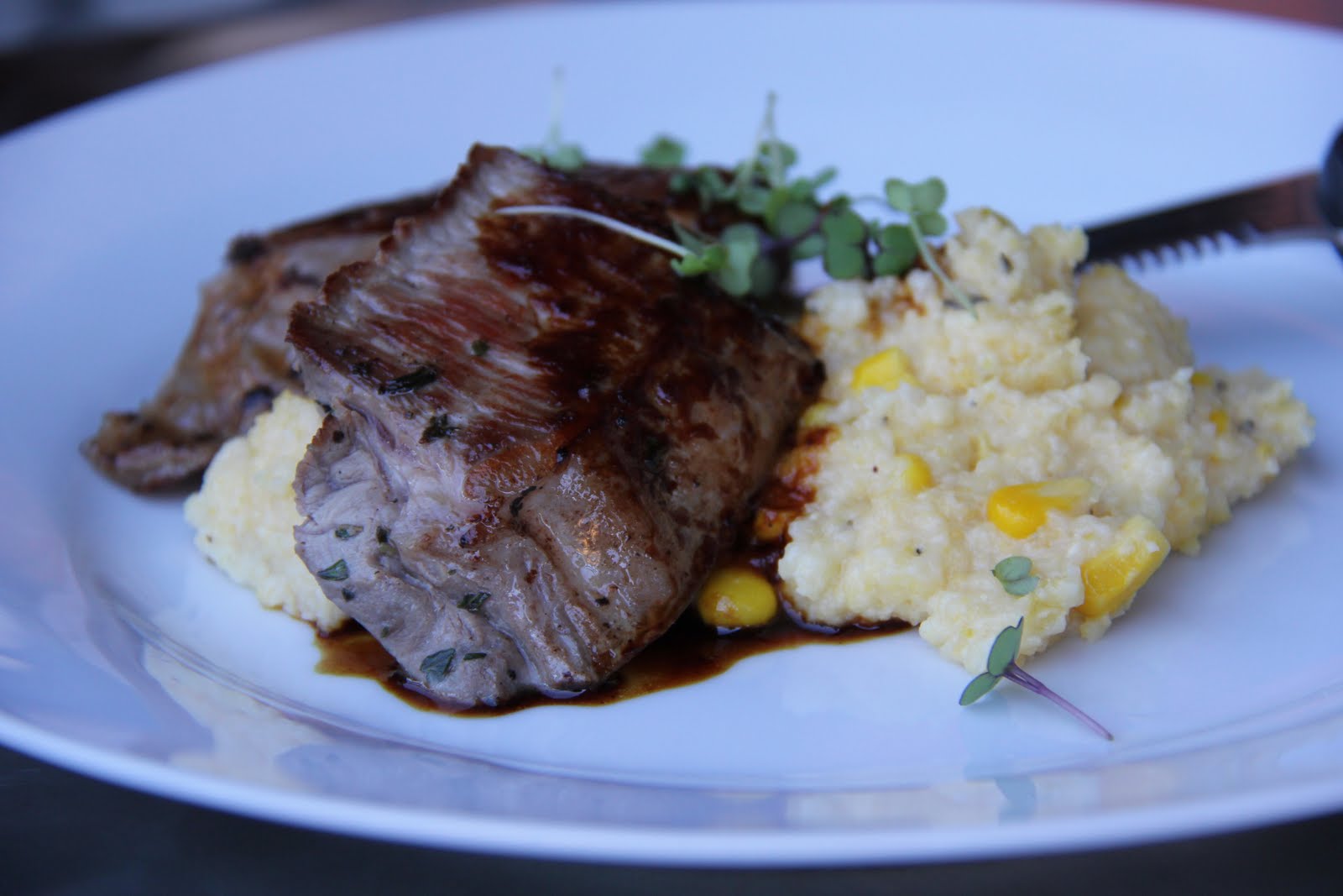 We also ordered the Cheese Tasting Plate ($10.00) and the Seared Lamb Loin with roasted corn polenta. ($14.00) It was a great selection of plates and very filling. The cheese plate comes with both foreign and domestic varieties and is exquisitely put together. All the dips were delicious and the lamb was tender.