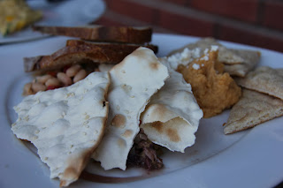 On my most recent visit, it was just my husband and I and the dishes we shared were the Appetizer Plate, ($8.00) which has a selections dips that include hummus, an olive tapenade, a goat cheese spread and a white bean salad with crostinis for dipping.