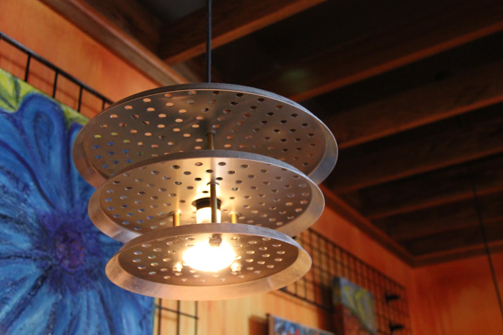 The atmosphere at Waldo Pizza is family friendly with trivia cards on the table, a game room, and unique light fixtures that are made out of their pizza pans.