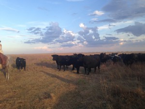 Derek runs about 600 calfs a year and once the cows are around 600 pounds they are custom grazed throughout the spring and summer in small towns around Emporia, Kansas where they will beef up (no pun intended) to about 800 – 850 pounds. The cows are then taken to Ellinwood, Kansas to a feed lot for a 120 days where they will end up around 1300 pounds. The cows are then taken too Garden City or Dodge City for harvesting.
