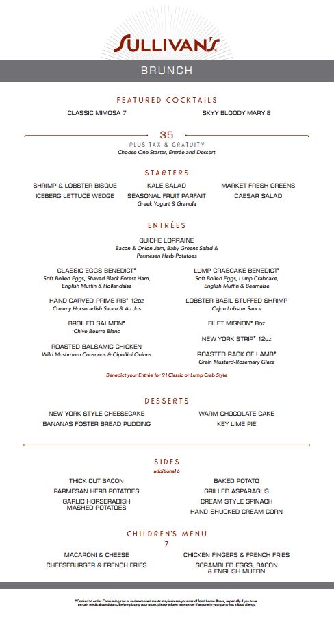 This Easter, diners can enjoy a $35 three-course brunch menu at Sullivan’s Steakhouse Leawood available from 11:00a.m. – 2:00p.m. Menu highlights include: