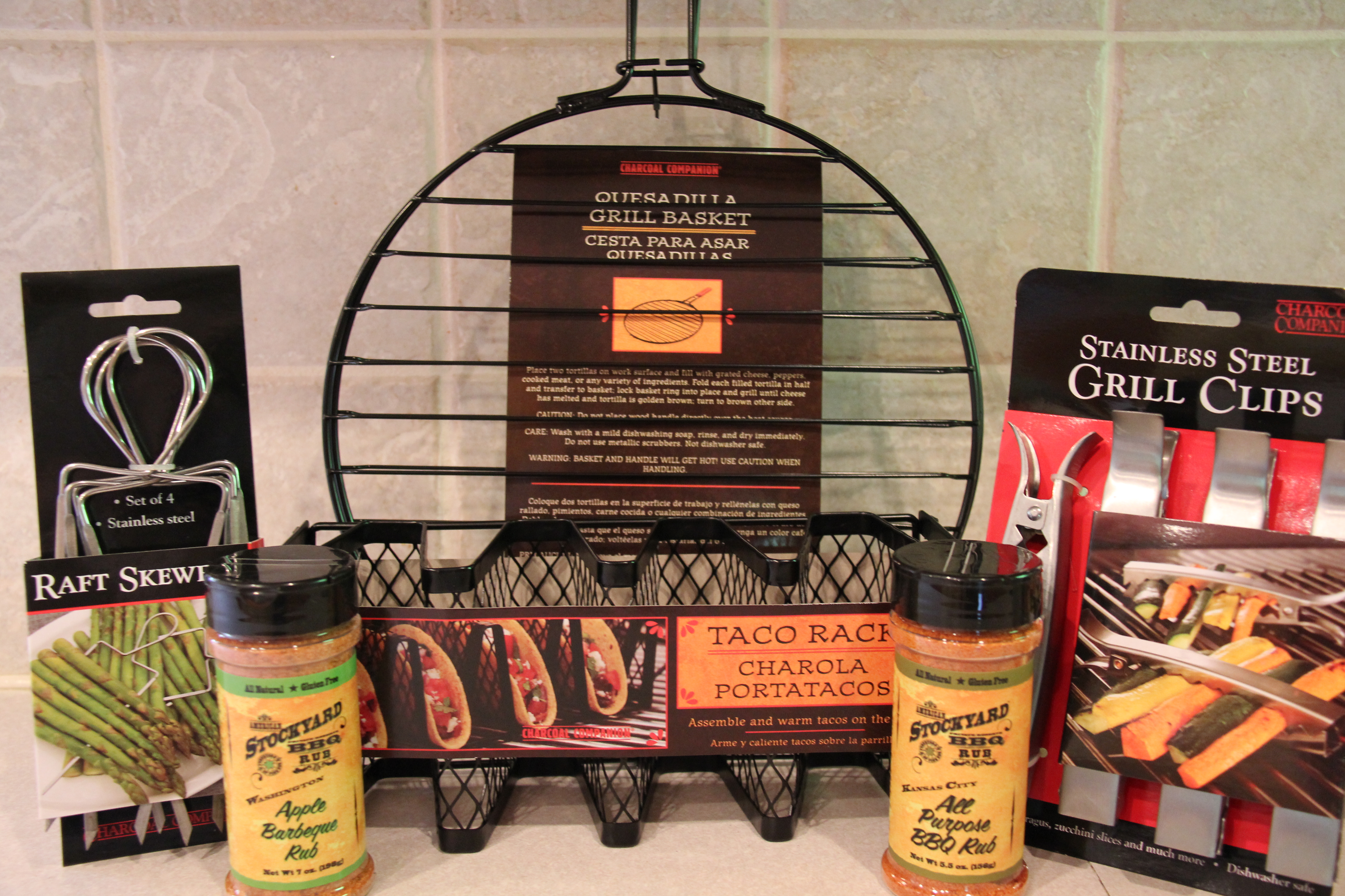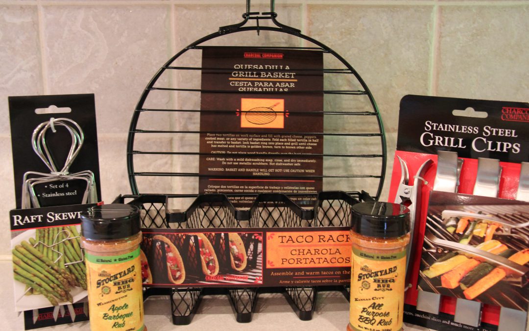 The following prize pack includes a Quesadilla Basket, Taco Rack, Raft Skewers, Grill Clips and Spice Rubs.