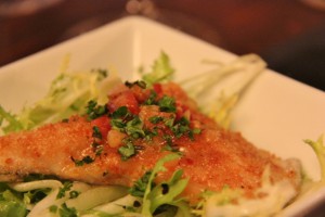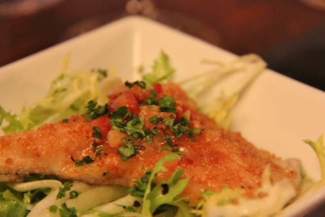 Parmesan Encrusted Trout, Frisée Salad, Warm Bacon Vinaigrette with CMS Sauvignon Blanc Columbia Valley