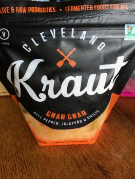 Fermented foods are all the rage now and when I received some samples of Cleveland Kraut, my creativity juices started flowing.The flavors of the kraut come in Gnar Gnar which features jalapeños and peppers, Curry with turmeric and ginger, Whiskey Dil, Classic Caraway, Beet Red featuring fermented beets, Roasted Garlic and Cabbage and Cukes.