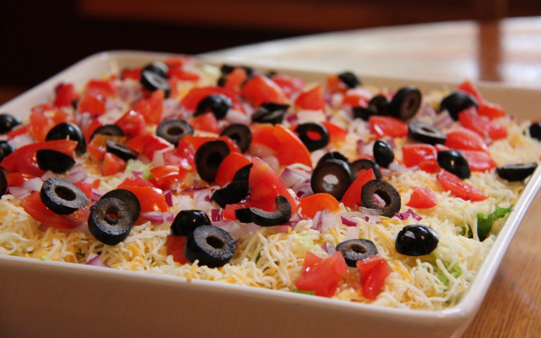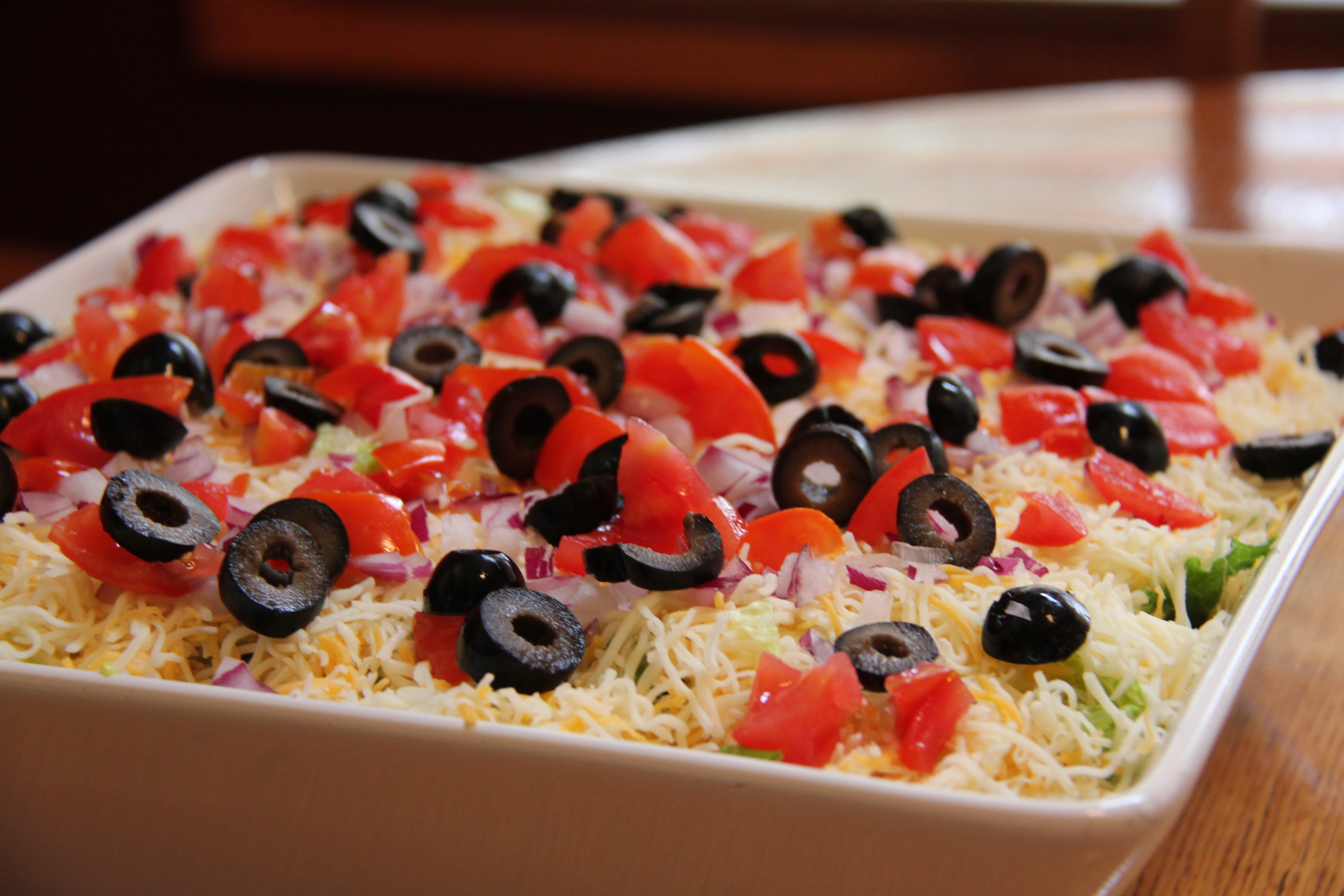 This Mexican layered salad is a favorite family recipe I make all the time and instead of a sour cream sauce that I normally make for it, I took a stab at Red Gold’s Green Chili Aioli recipe and it was a hit.