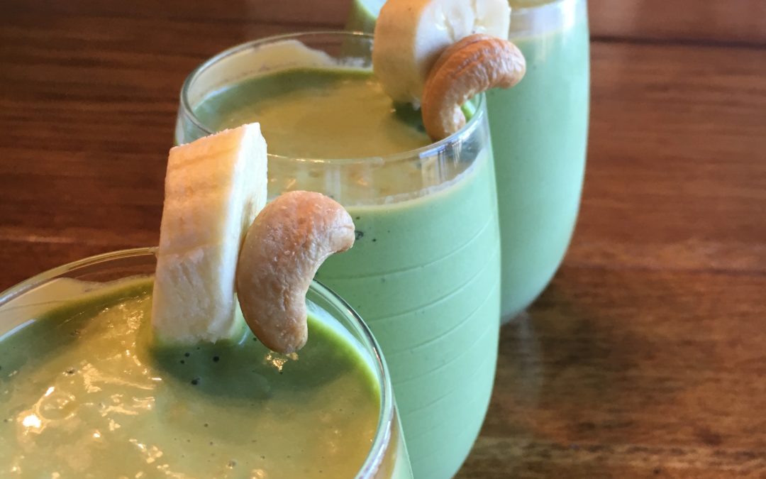 This protein packed cashew and banana smoothie is a new take on one I usually make with almond butter that my daughter loves. It is super simple using almond butter, spinach, banana and almond milk along with a little ice fro blending.