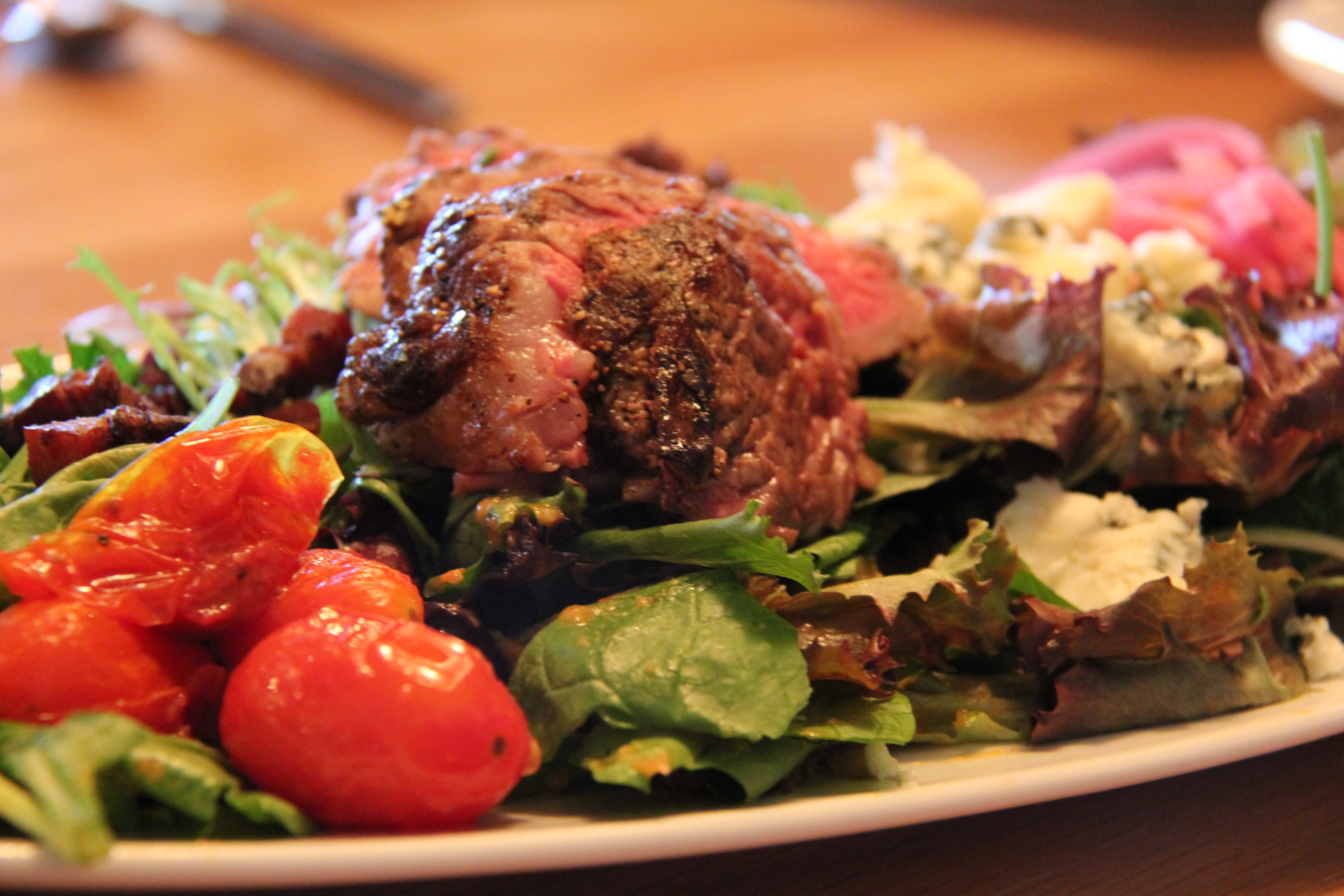 Smokehouse Cobb Salad – A perfectly cook tenderloin tops this salad and is filled with Maytag bleu cheese and house cured lamb pancetta all tossed in a smoked tomato vinaigrette.