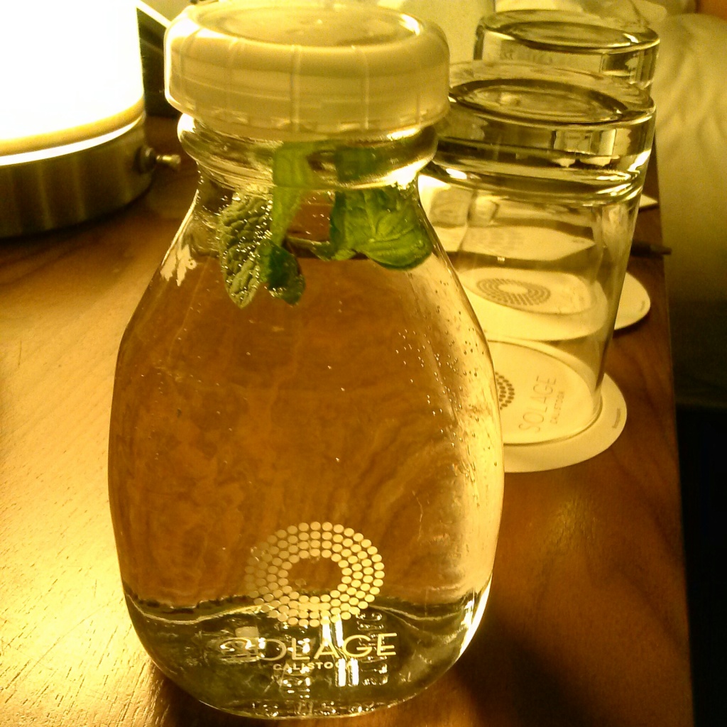 Nightly turn-down service includes a glass water bottle adorned with mint leaves left at the bedside. The water is delightfully tasty and a perfect way to re-hydrate after indulging in wine tours all day.