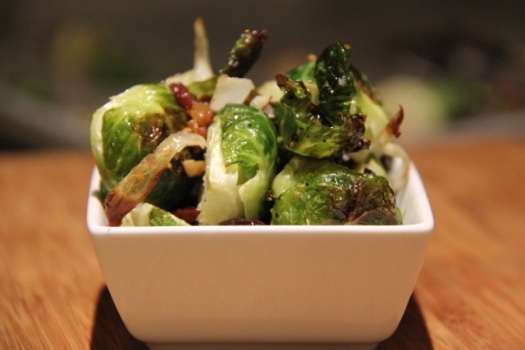 Roasted Brussels Sprouts with Bacon, Almonds and Dried Cherries