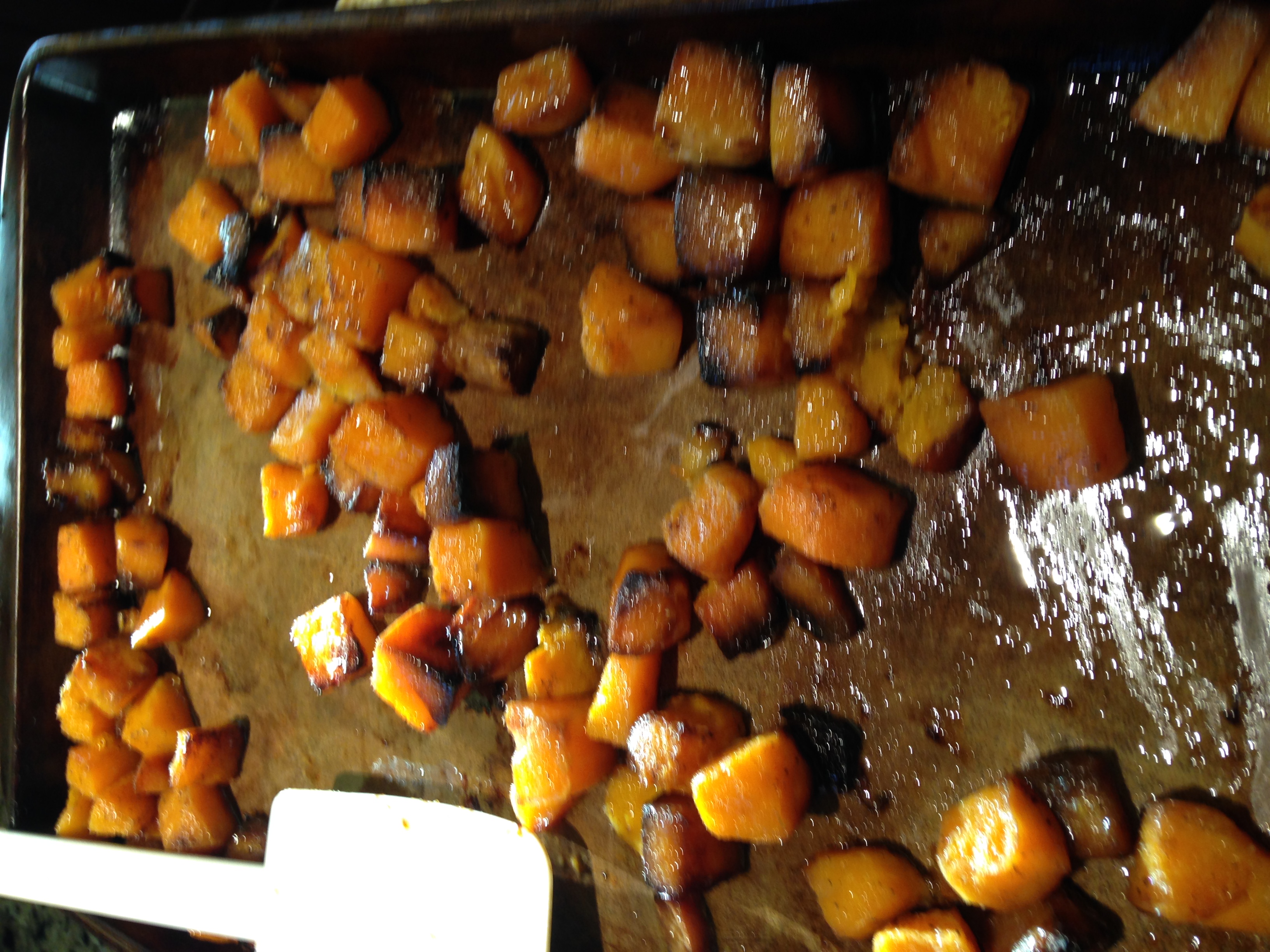 Toss pre cut squash with salt and pepper and olive oil. Roast at 450 degrees for 20 minutes.